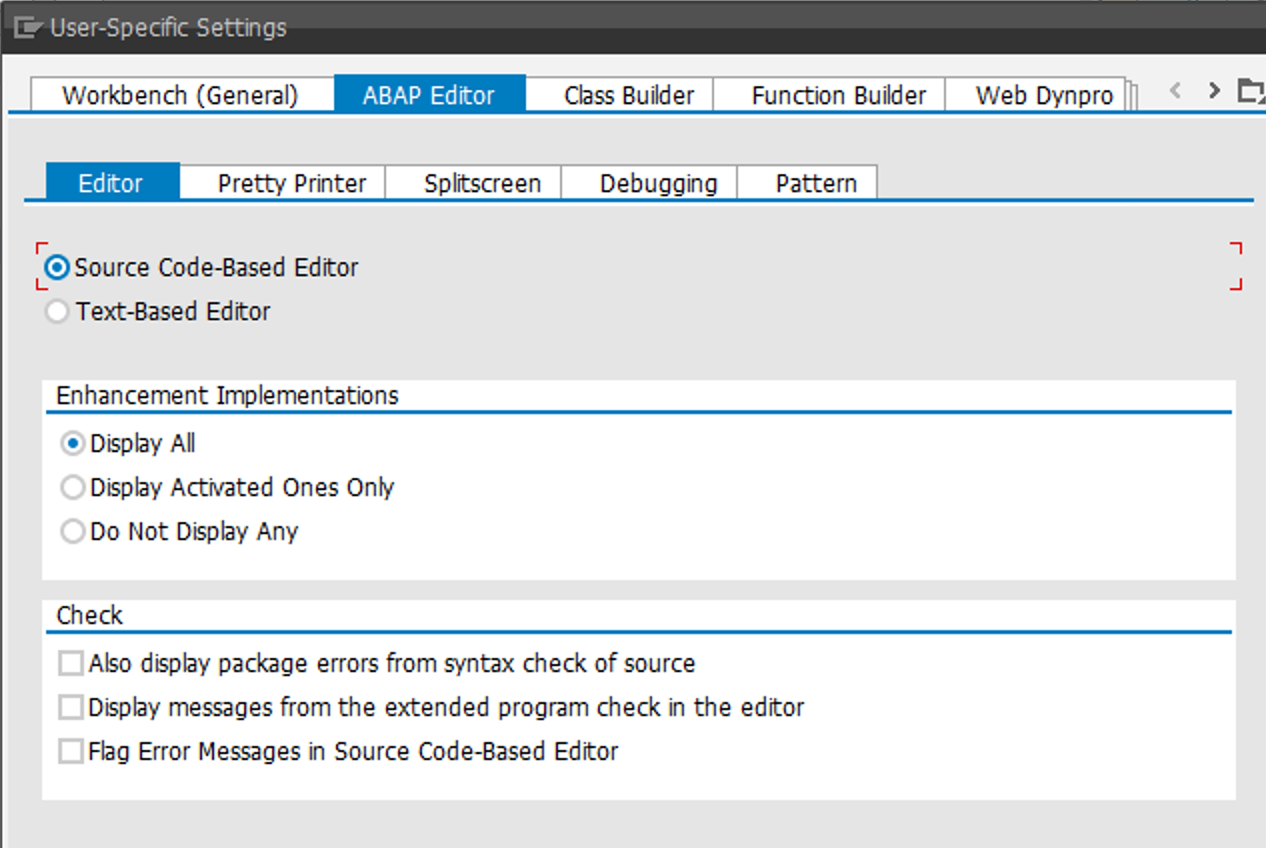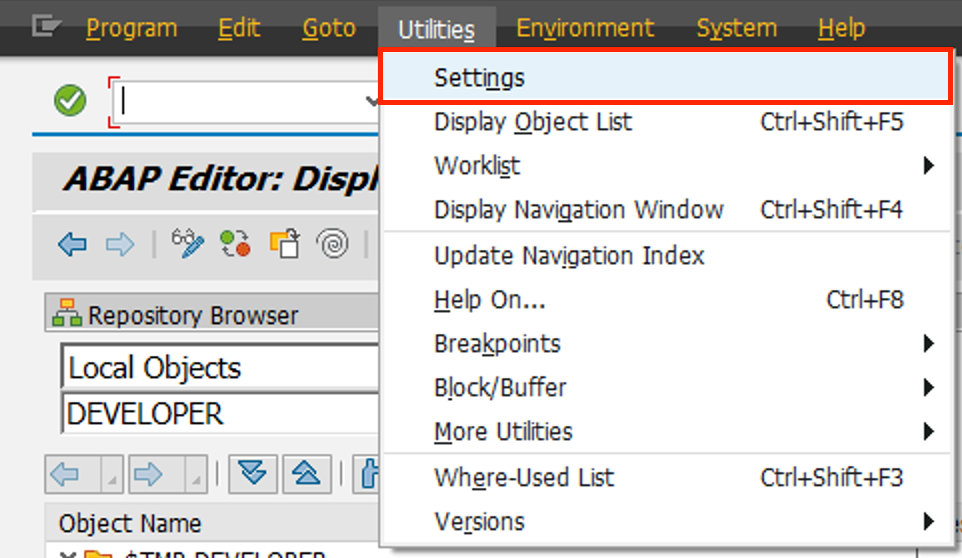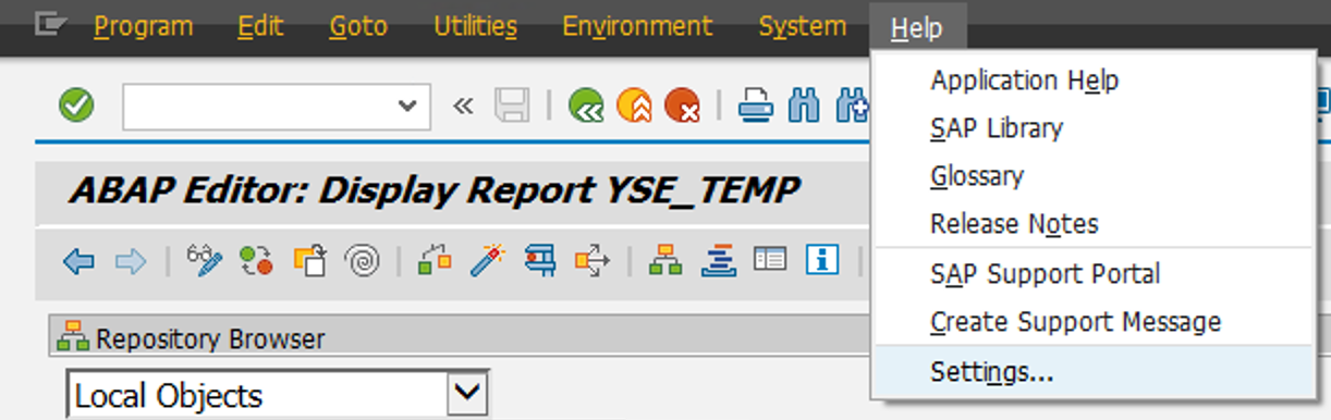 4. ABAP Editor 설정( SE80에서 Editor 사용시 우측 하단 )