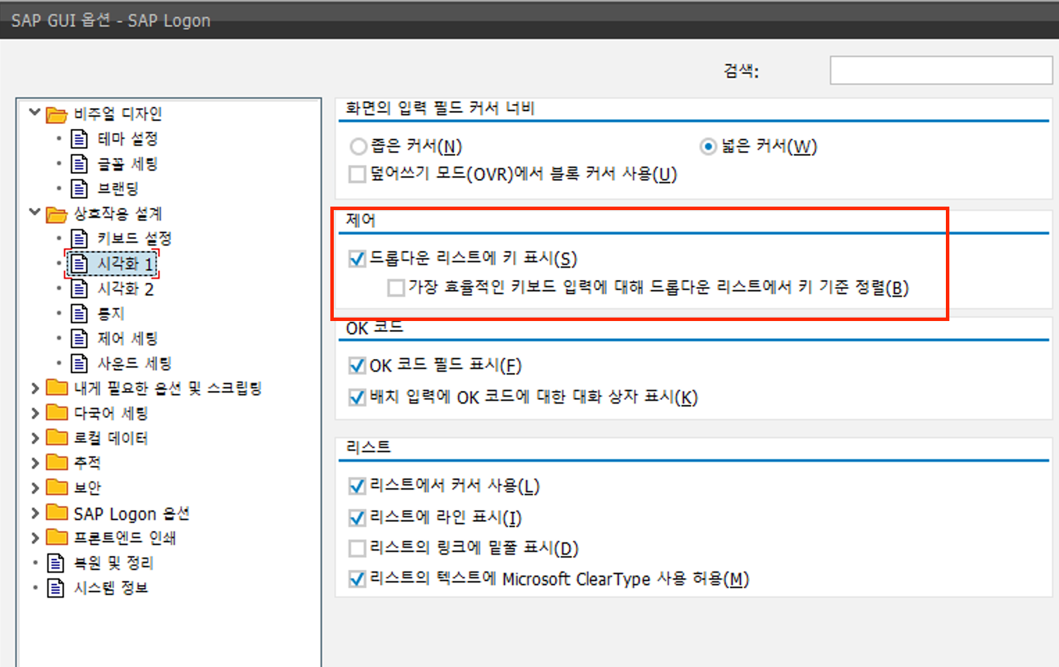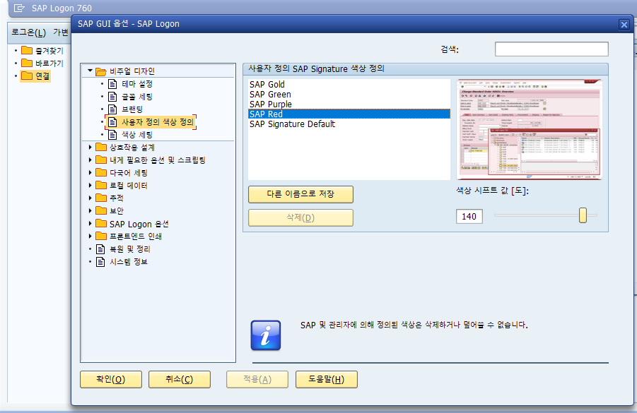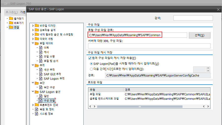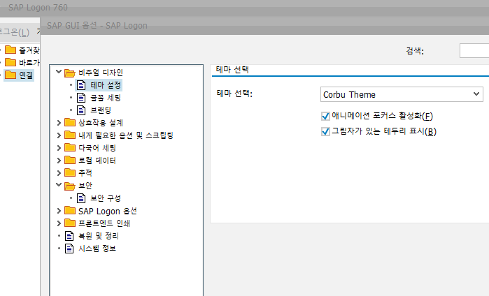 SAP GUI 설정은 보통 4가지로 나뉩니다.