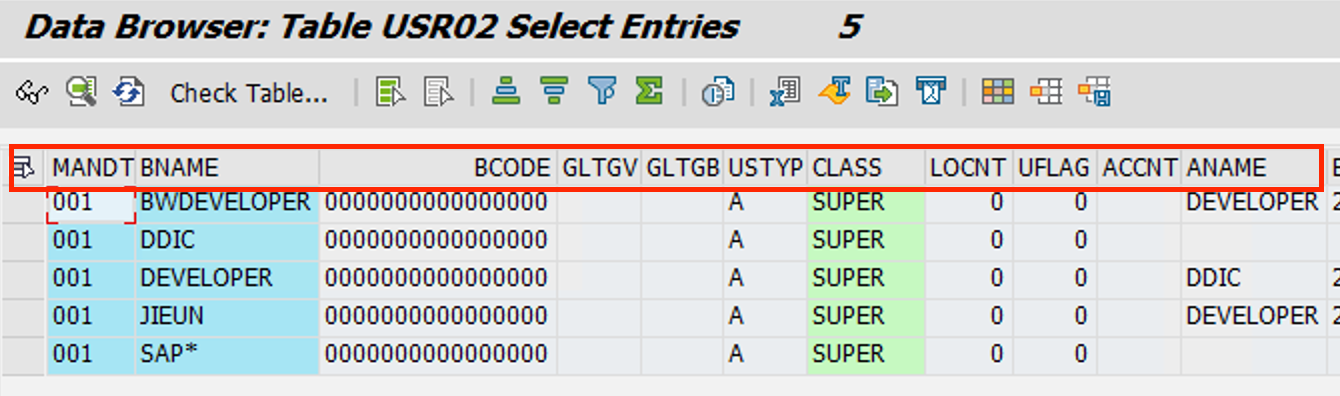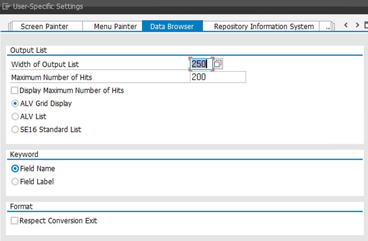 2-D. Data Broser : SE16, SE11등 데이터 보여줄때 레이아웃 설정