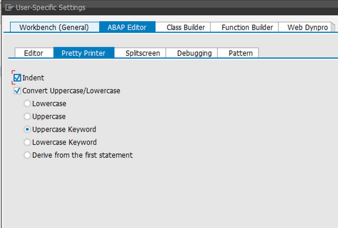 2-B. ABAP Editor 설정( 어떤 강의자는 "이쁘니"로 이야기 하시는 소스 정렬 기능 )