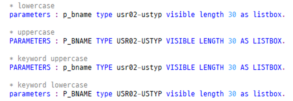 - LowerCase, UpperCase KeyWord : 키워드 대문자 문자 소문자