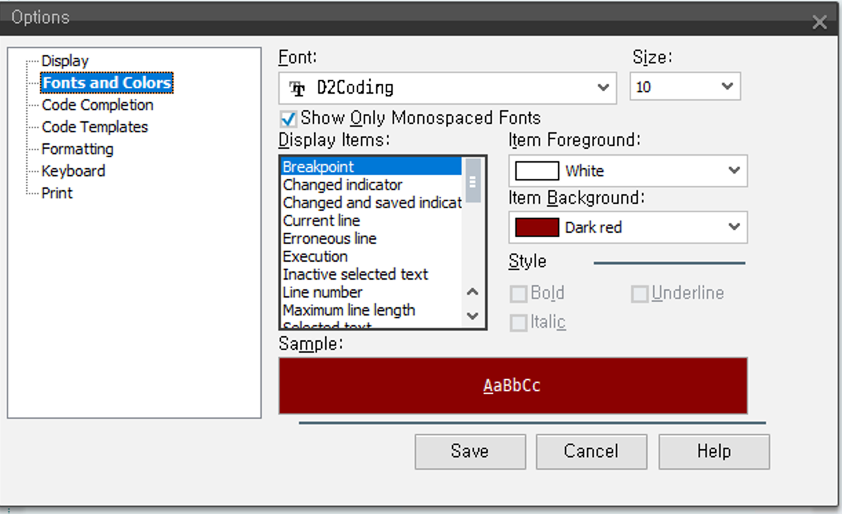 ==> Font에 대한 여러가지 설정 및 Editor의 표현방법(?)을 볼 수 있다.